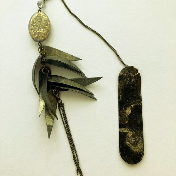 <材料>黒谷和紙(京都府)、淡水パール、ヴェネチアビーズ、金具、パールトーン加工