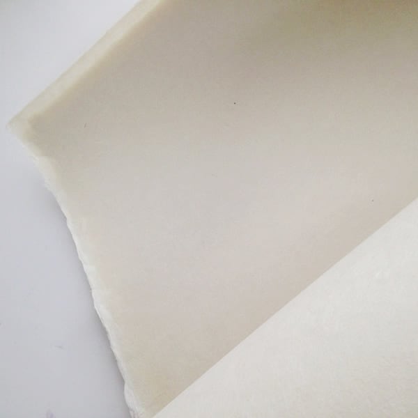 内側のカードを入れるポケット部分には島根県、出雲民藝紙の三椏紙を使用しています。民藝の創始者、柳宗悦と民芸活動を共にした安部榮四郎氏の孫にあたる安部兄弟が漉く和紙です。きめ細やかな肌合いの和紙は色合いも美しくこちらにもこんにゃくのりのコーティングをしています。