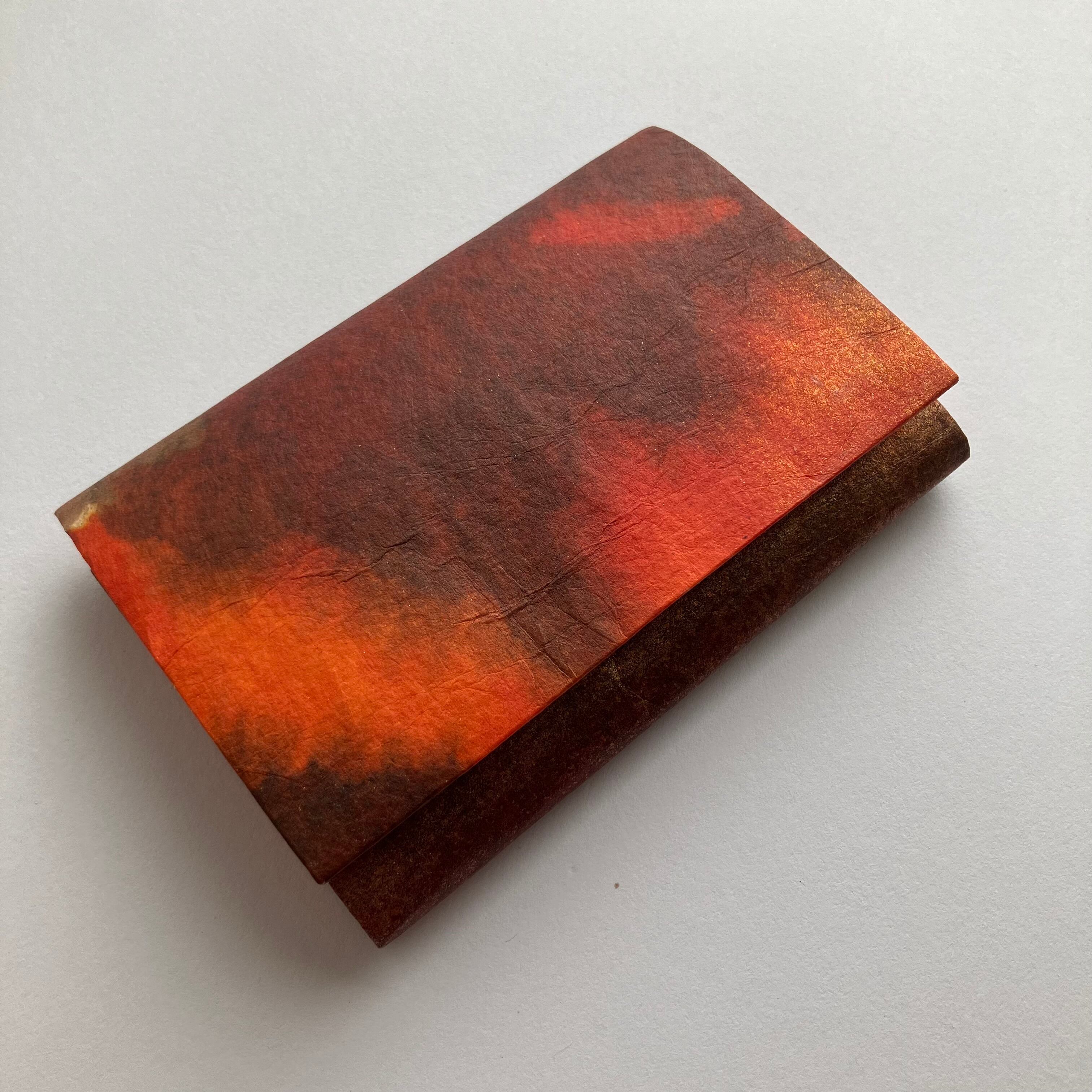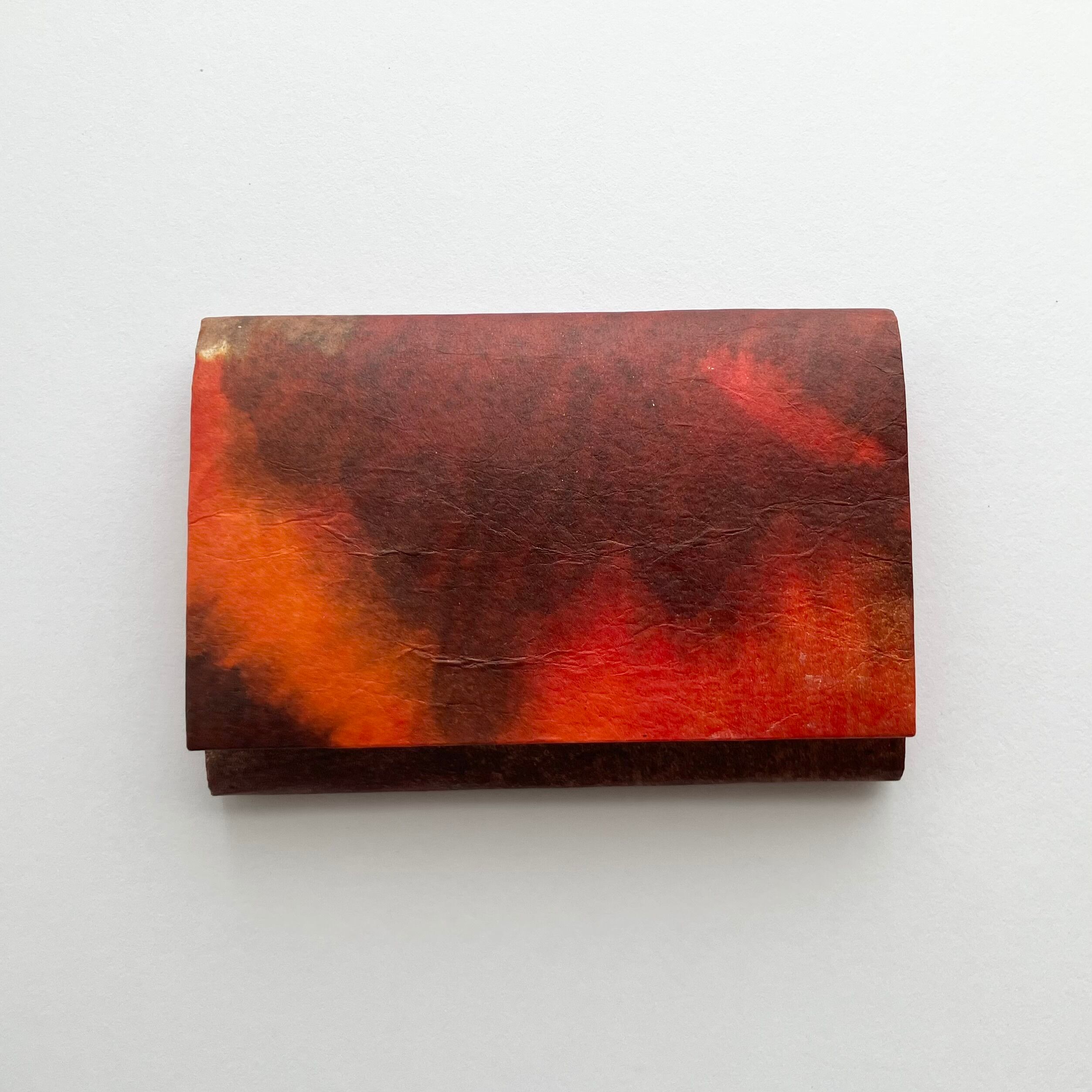 暁と名付けたこの名刺は、日が昇り照らされる太陽の色合いで和紙を染めて作りました。橙色の燃えるような朝焼けは一日の始まりを力強く伝えてくれるようです。