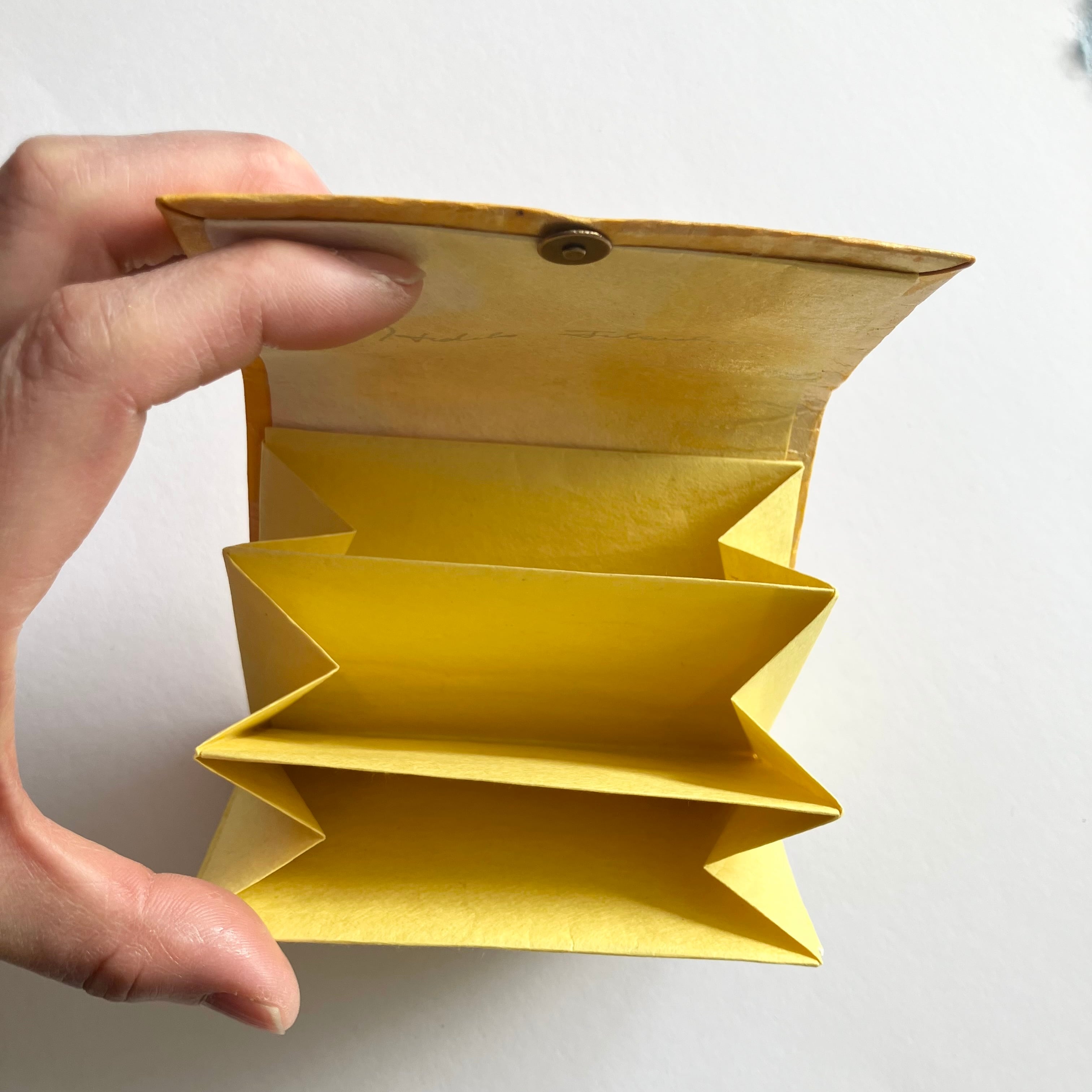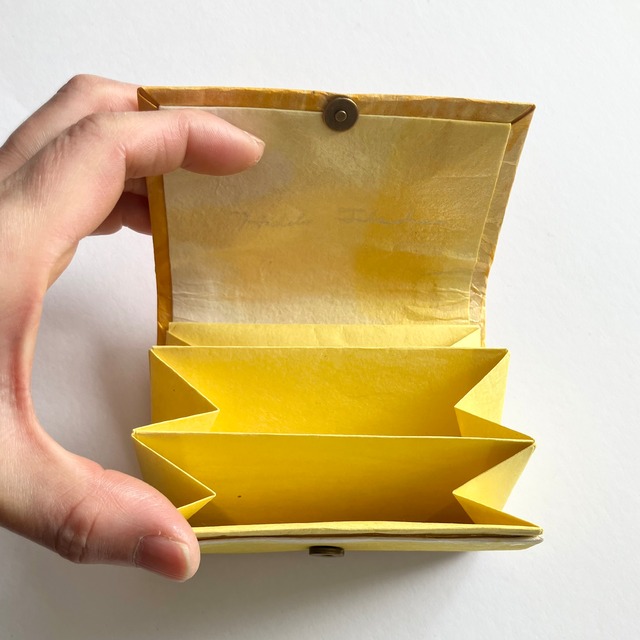 3つポケット。マグネットボタン <サイズ> 約 高さ7.5cm×幅10.5cm×厚み1.5cm <重さ>18g 三椏紙の和紙袋、「作品のお取り扱いについて」説明書付き