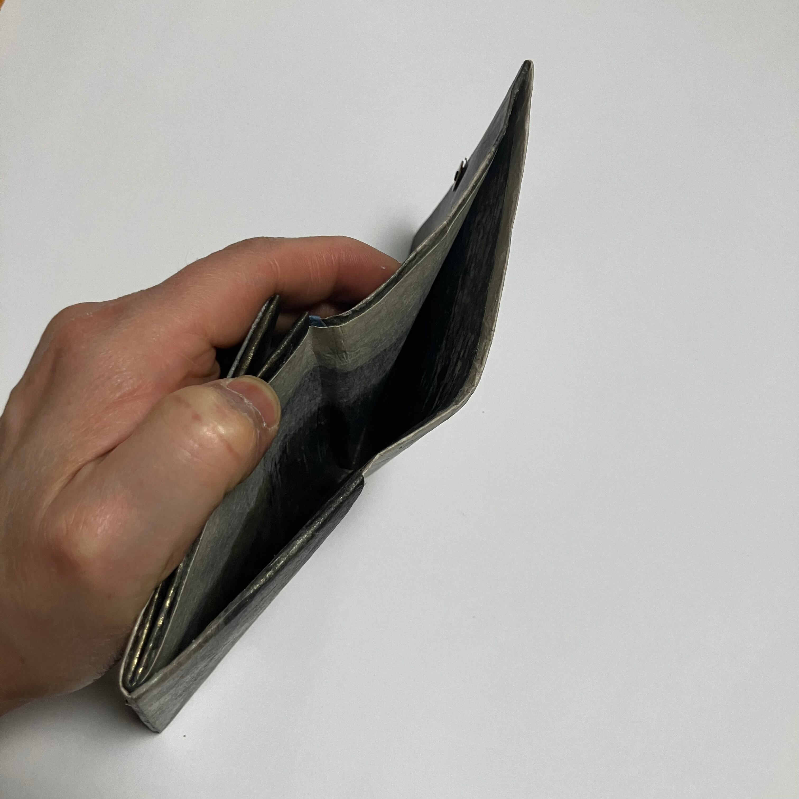 内側カードを入れるポケット部分は三椏(みつまた)を使用した手漉き和紙で作りました。島根県、出雲民藝紙を漉く安部さんの和紙です。三椏紙は紙幣にも使われるキメの細かい和紙です。外側に合わせて色を選び、こちらにもこんにゃくのりのコーティングをしています。