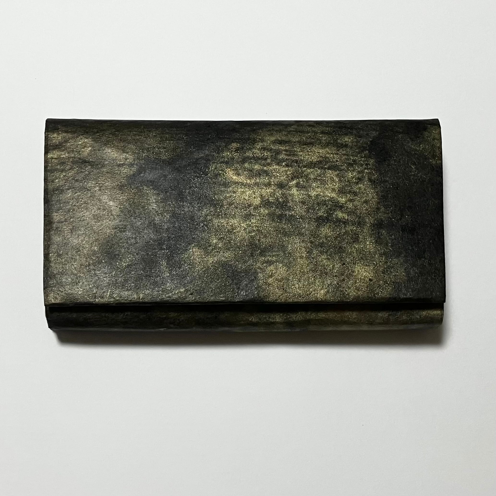 5つポケット。マグネットボタン <サイズ> 約 高さ10.5cm×幅19.3cm×厚み2.7cm <重さ>97g ポケットに使用した同じ色の三椏紙の和紙袋、「作品のお取り扱いについて」説明書付き