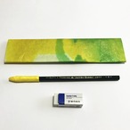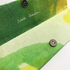 和紙のペンケースはコンパクトサイズなので持ち運びに便利です。色染めを繰り返し、途中もみを加えながら昔から和紙の補強に使われる自然素材のこんにゃくのりでコーティングをしています。黄色、黄緑色、白色の新しい芽吹きの色合いで仕上げました。マグネットボタンでとめます。