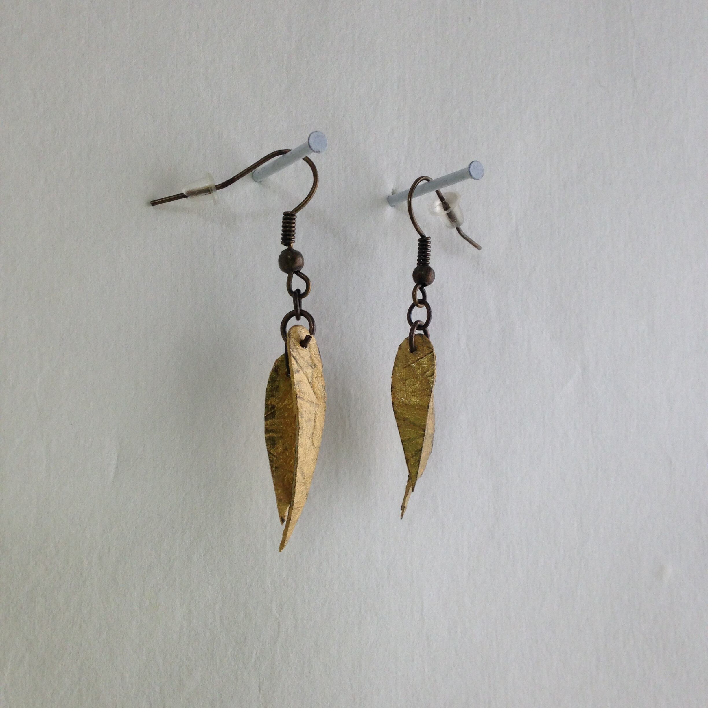 鳥をイメージしてつくりました。1枚の羽は美しく、それが集まった鳥の姿はもっと美しい。そして羽ばたいている姿は感動的です。それをアクセサリーにしたくて。一枚一枚の羽を丁寧に作っていきました。和紙を貼り重ね、1枚、1枚をハンドメイドでカットして、樹脂でコーティングしています。身に着けている時が一番綺麗に見えるアクセサリーです。イヤリングをご希望の場合はご注文の際にメールにてお知らせください。