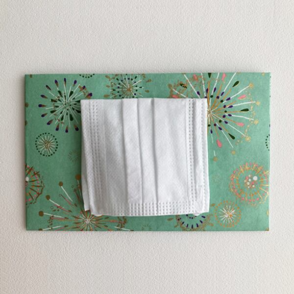 和紙のマスクケース【夏模様】花火(黄緑)